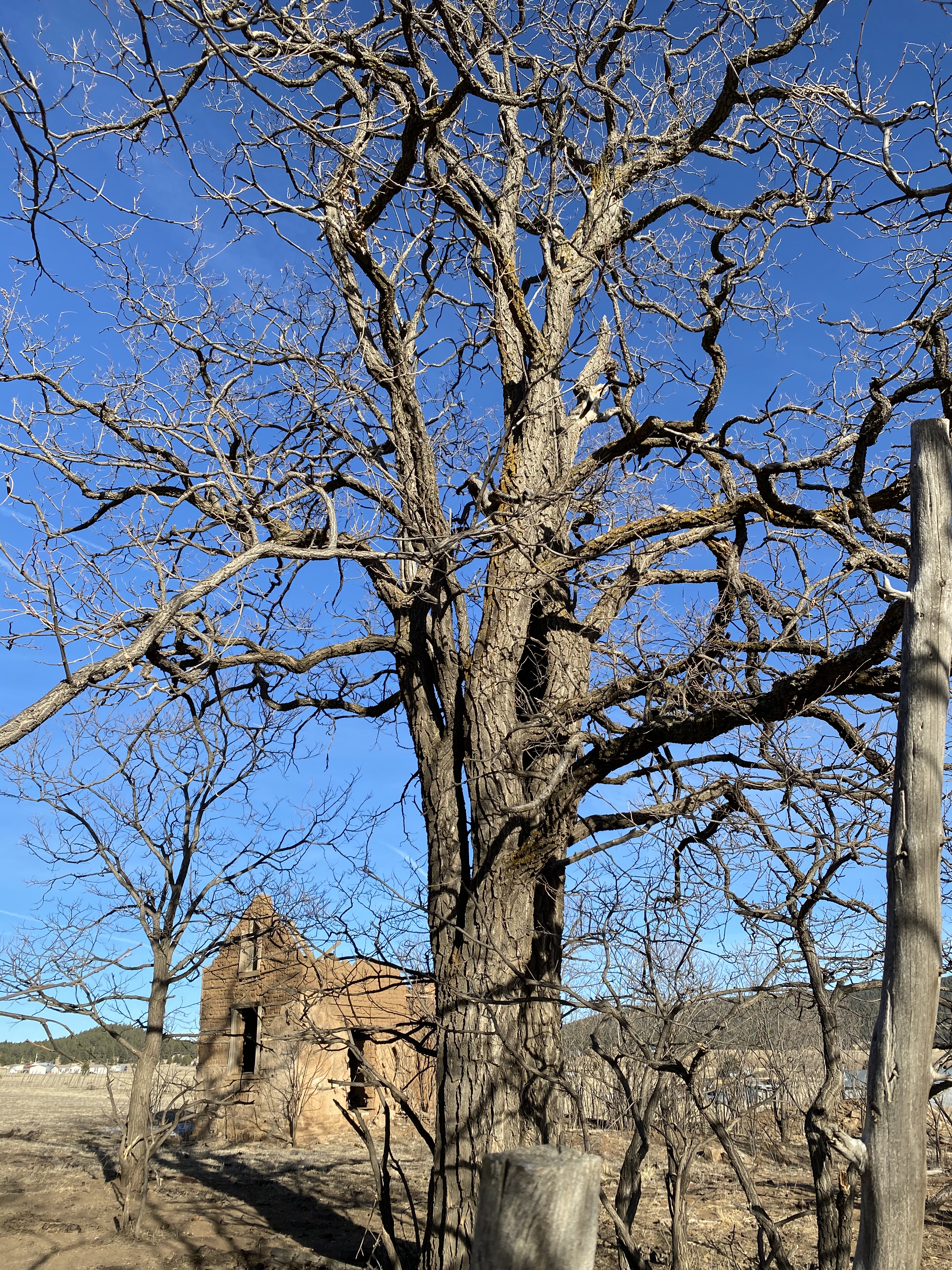 When a family outgrew an adobe home, they built another one, only bigger. Or, they built a wood frame home. Sometimes a combination of the two styles seemed the better choice. More often than not, they abandoned the old adobe. These homes stand silent vigil as the seasons came and went. Cattle scratch themselves on against the mud walls, wearing them down. A family adobe can last for 100 years and longer, watching the family it sheltered grow larger still, and as time passed, it saw new homes arrive on the land. Manufactured homes of all shapes and sizes. Finally, when the metal roofing gives way to the west winds, it is the beginning of the end. The wood rots, the roof trusses collapse, and finally all that is left are the walls. Eventually the walls erode and the mud bricks return to the soil. Soon, all that remains is a bump in the pasture. When the roof goes, so does the casita… and like us all, sooner or later, returning to the soil.